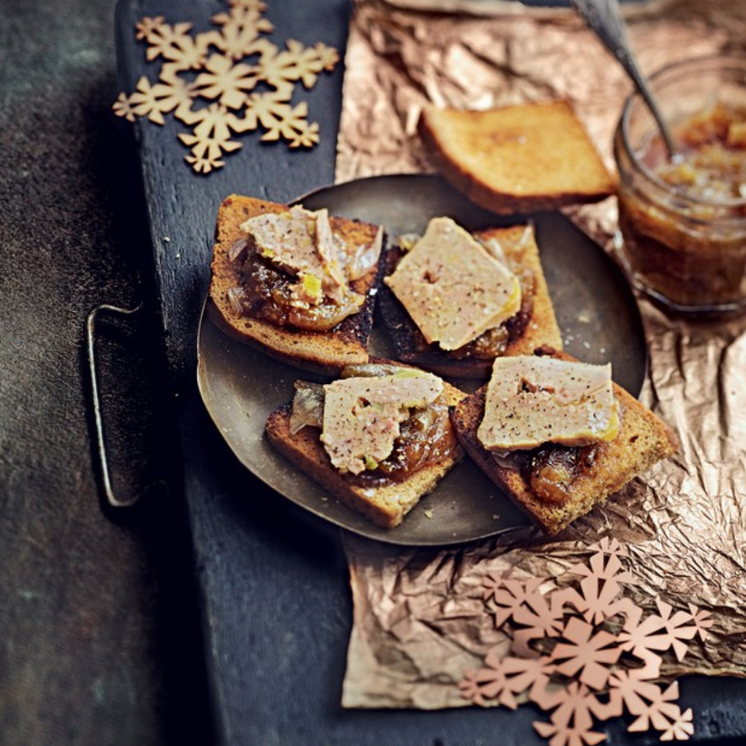- Servez chaque escalope sur une tranche de pain grillé, accompagnée d’une cuillère de chutney de figues. Assaisonnez avec un peu de fleur de sel et de poivre.