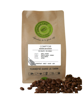 - Café de spécialité arabica bio d’Ethiopie. Tasse corpulente et boisée aux notes fruitées.