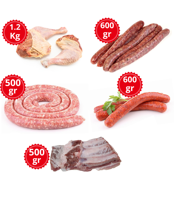 Poids total de l'assortiment de viandes à griller : 3,4 kg - Convient pour 6 à 8 personnes