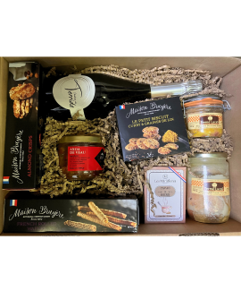 Le Grand Panier gourmand des producteurs Saveurs du Tarn est une sélection complète de produits régionaux, issus des artisans et producteurs du Tarn. Il comprend des spécialités telles que le foie gras entier de la Ferme du Lacas, une bouteille de Méthode Gaillacoise du Château de Terride, des douceurs sucrées comme les chalumeaux et croquants noisettes et fèves de cacao de Maison Bruyère, ainsi que des biscuits apéritifs. Ce panier inclut également une verrine d'Axoa de veau de La Ferme du Paradisier.